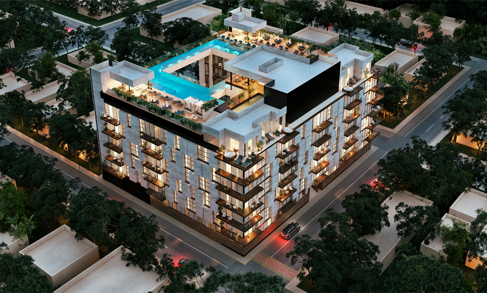 Ceiba at 25 raises the standards of design, luxury, and comfort in developments along the Riviera Maya. It is an apartment building with 6 levels and 92 units ranging from 52 m2. Inside, you will find luxurious rooms and common areas with the Ceiba as the protagonist.